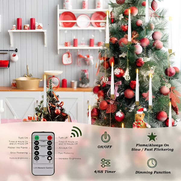 Dzięki pilotowi z 10 przyciskami możesz regulować jasność świec, wybierać spośród czterech trybów światła oraz ustawiać timery na 4 lub 6 godzin, co zapewnia wygodę i elastyczność w dekorowaniu.