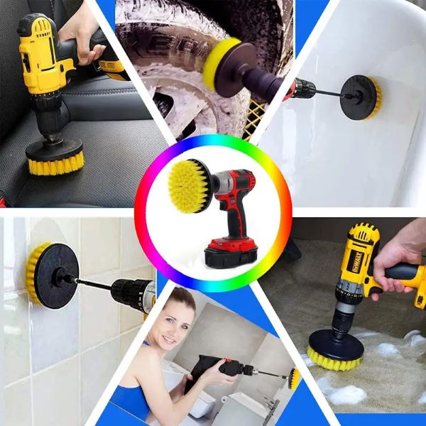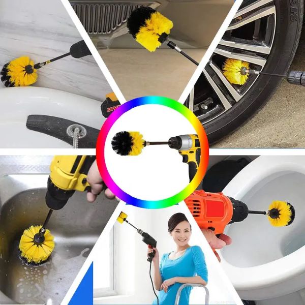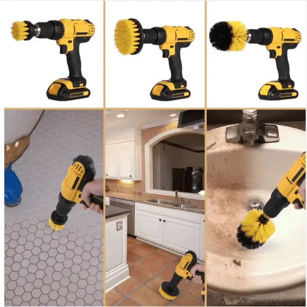 Ten profesjonalny 3-częściowy zestaw może być używany w pomieszczeniach i na zewnątrz. Nasadki do szczotek są idealne do szorowania powierzchni kuchennych, łazienkowych, wanien, pryszniców, zlewów, płytek, fug, włókna szklanego, wnętrz domów, samochodów, łodzi i kamperów.