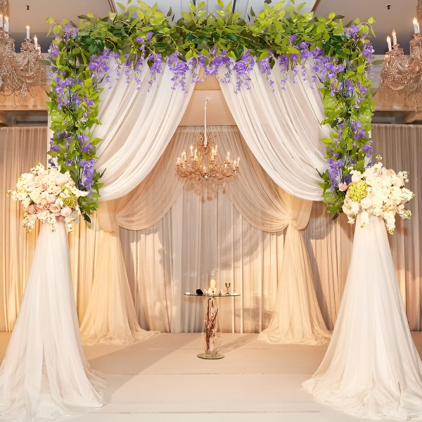 Dodaj romantycznego akcentu swojemu ślubowi lub wydarzeniu. Sztuczna glicynia WISBLOOM idealnie nadaje się do tworzenia oszałamiających łuków ślubnych i dekoracji. Te kwiaty symbolizują miłość i szczęście oraz wprowadzają ciepłą, romantyczną atmosferę do każdej uroczystości.