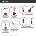 Ten zestaw 4 w 1 zawiera otwieracz z pompką powietrzną, obcinacz do folii, nalewak z aeratorem oraz korek próżniowy, zapewniając doskonałe wrażenia z degustacji wina.