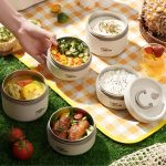 Ciesz się ciepłymi domowymi posiłkami, gdziekolwiek jesteś, dzięki temu wielowarstwowemu zestawowi pojemników na żywność.